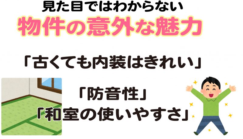 一方「見た目ではわからない物件の意外な魅力」では「古くても内装はきれい」が1位。